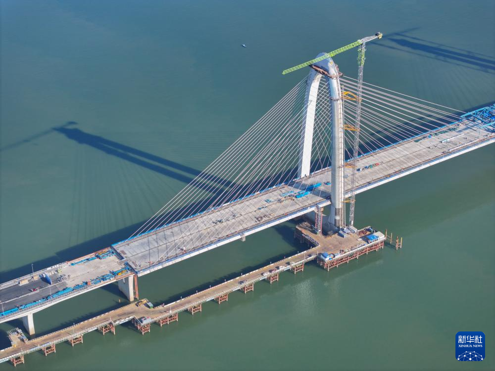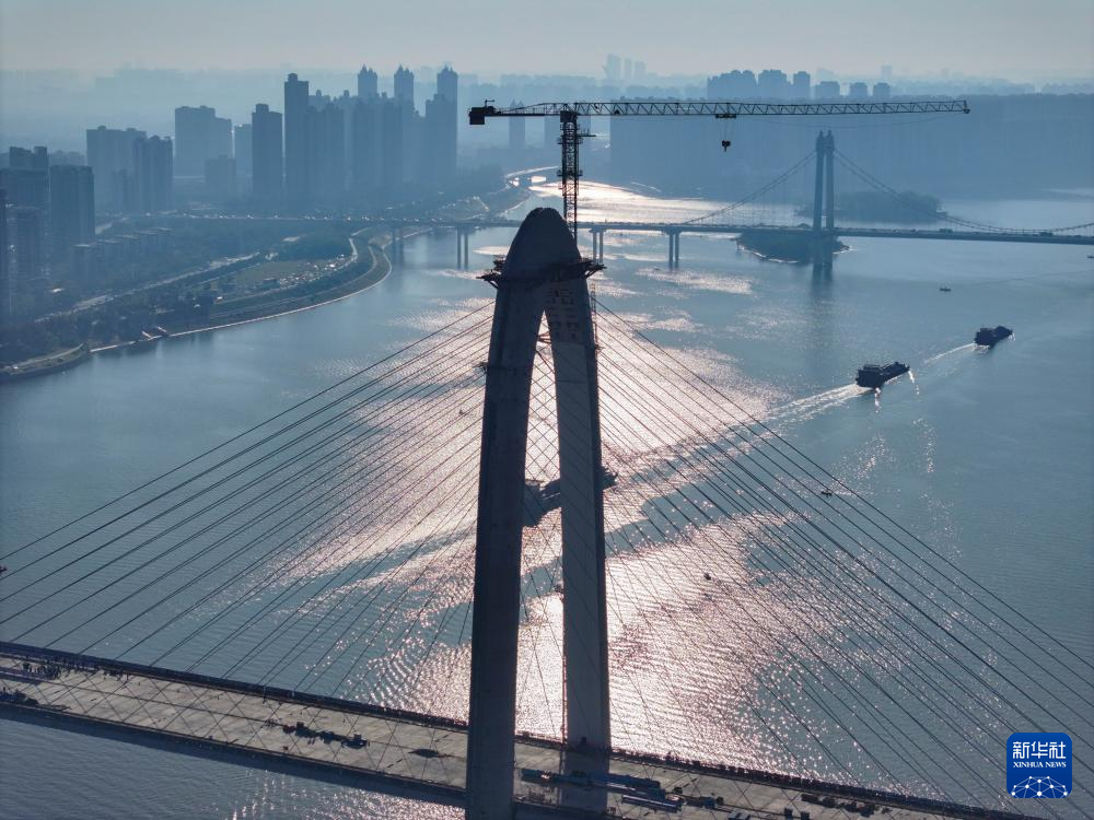 这是11月8日在长沙兴联路大通道项目建设工地拍摄的双塔斜拉桥主桥施工现场(无人机照片)。