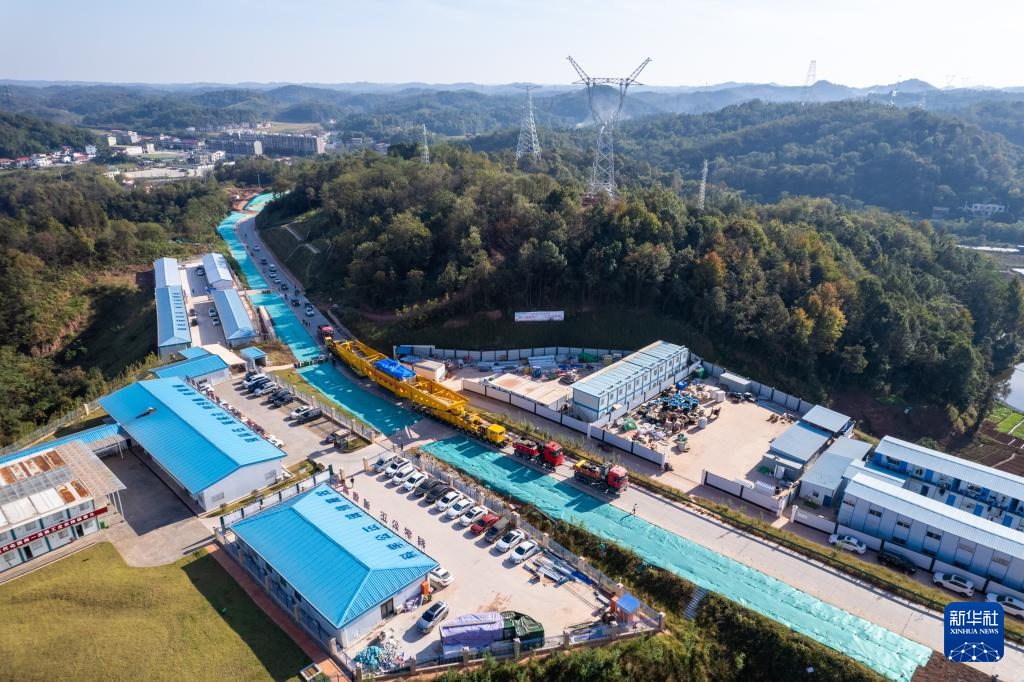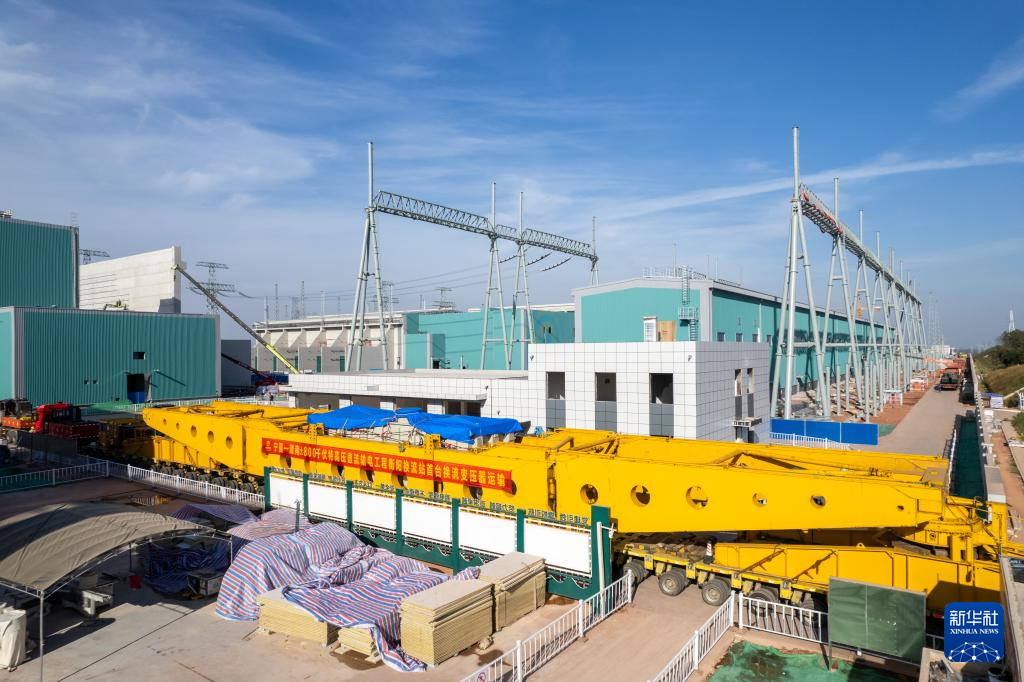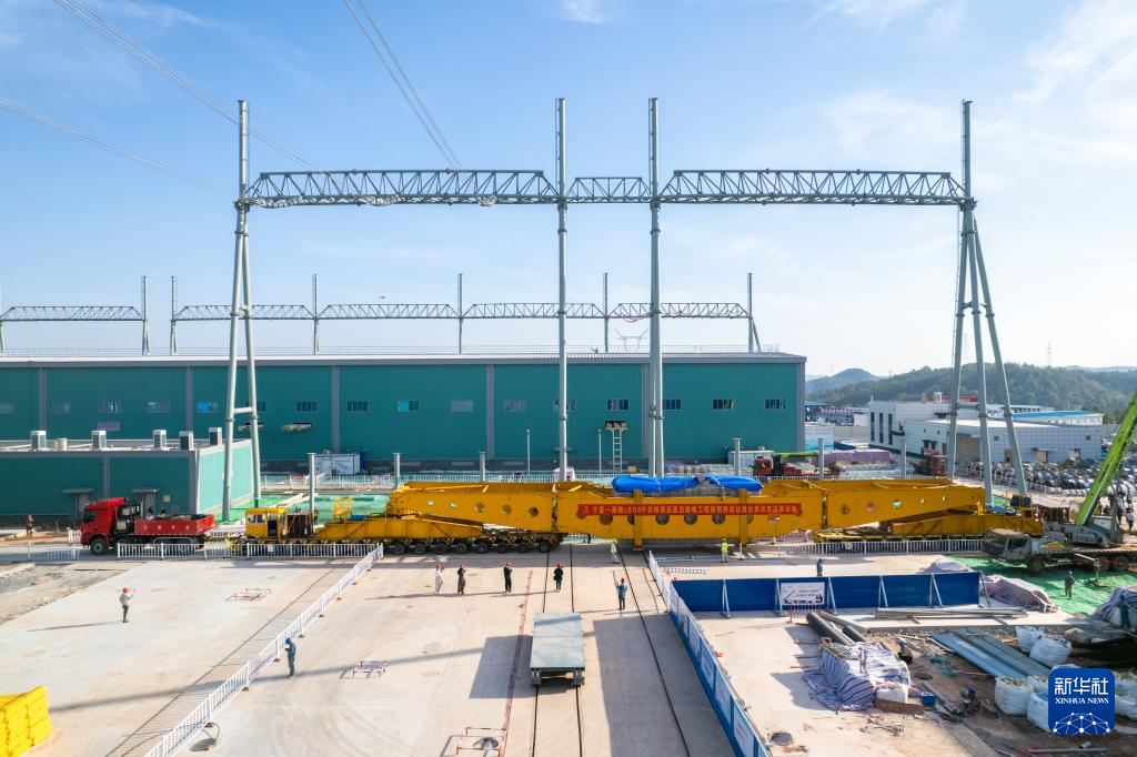 11月8日,换流变压器进入位于衡南县泉湖镇的衡阳换流站(无人机照片)。