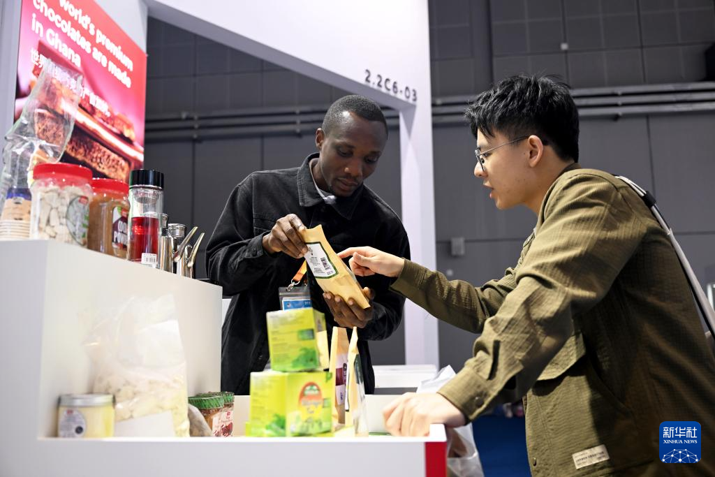 本届进博会在国家展为非洲国家搭起“大舞台”,在食品和农产品展区进一步扩大非洲产品专区面积,集中展示非洲特色优质产品,让人们可以寻一场“非洲之旅”。