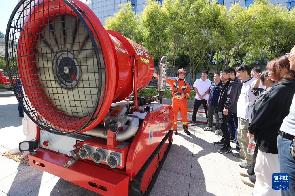 11月8日,在福建省厦门市思明区消防宣传月启动仪式现场,消防员向市民介绍消防灭火机器人的功能和用途。