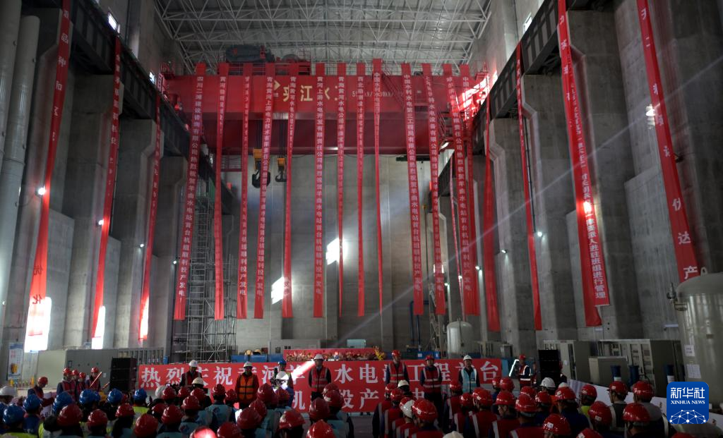 11月8日拍摄的羊曲水电站首台机组投产发电仪式现场。