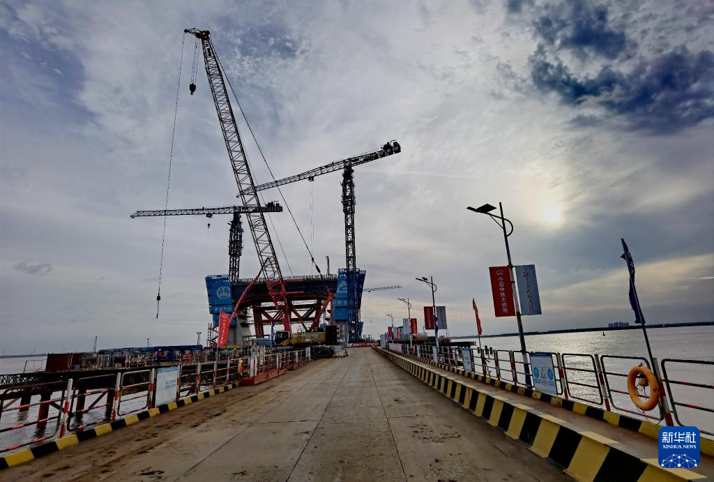 11月9日拍摄的崇启公铁长江大桥建设现场。