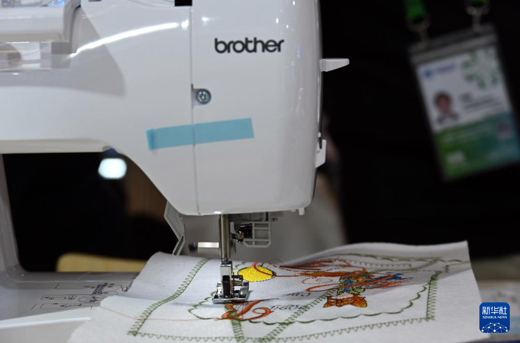 第七届进博会上展出的一款精密缝纫机(11月8日摄)。