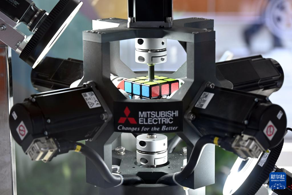 第七届进博会上展出的一款魔方机器人(11月8日摄)。