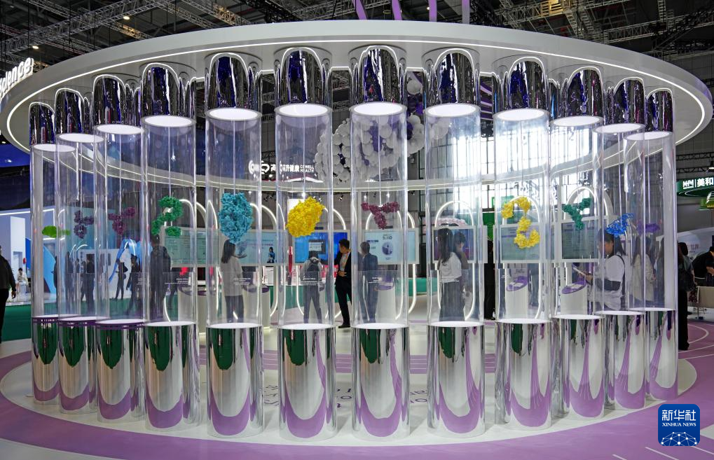 这是11月8日拍摄的第七届进博会赛诺菲展台。赛诺菲是进博会七届“全勤生”。