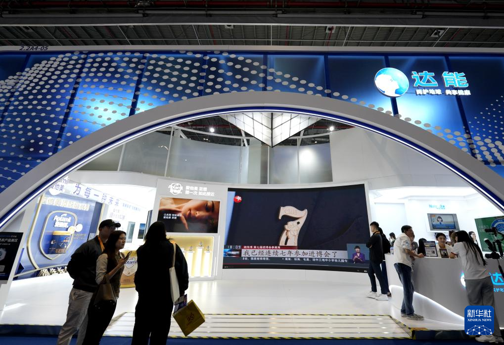 这是11月8日在第七届进博会拍摄的达能展台。达能是进博会七届“全勤生”。