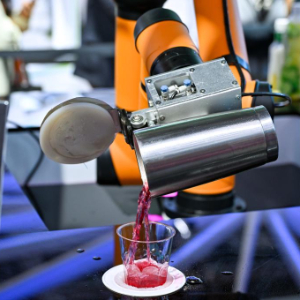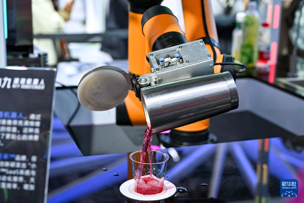 这是11月8日在第七届进博会西门子展台拍摄的一款调酒机器人。西门子是进博会七届“全勤生”。