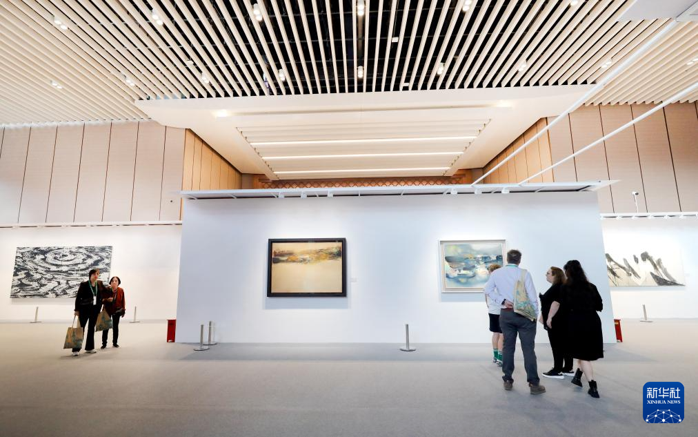 11月9日,观众在第七届进博会国际现当代艺术专区观看绘画艺术展品。国际现当代艺术专区是在前两届艺术精品专区基础上,首次引入境外艺术品的国际艺术交流项目。