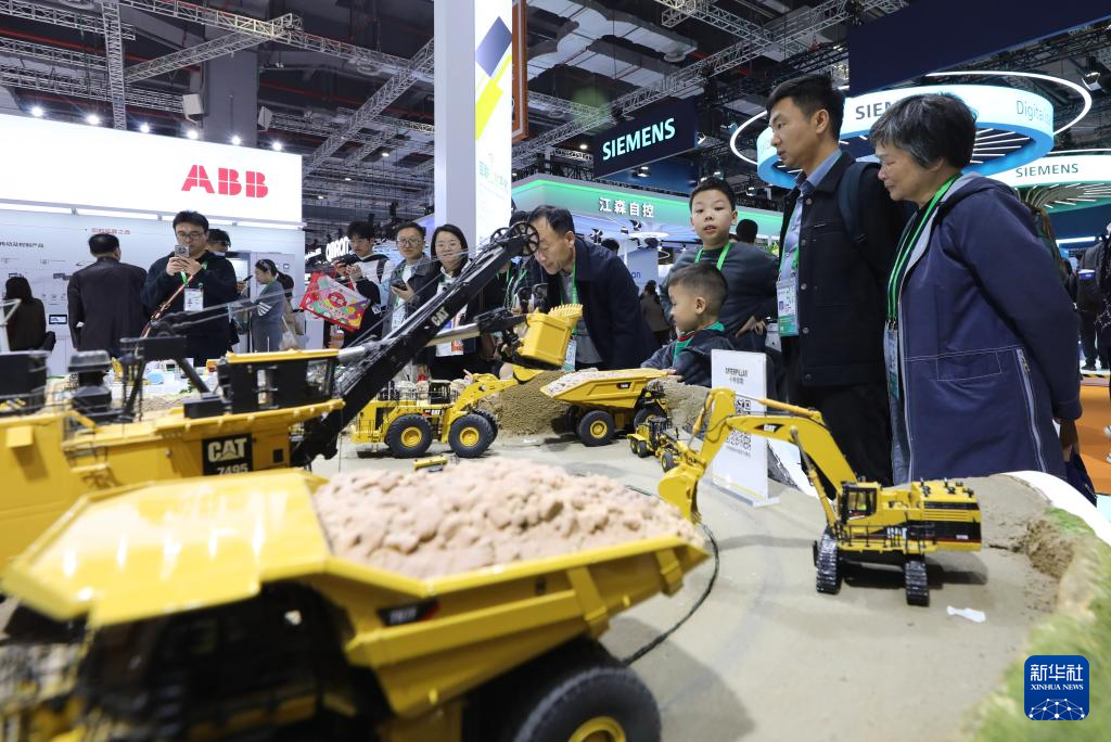 11月9日,观众在第七届进博会卡特彼勒展台参观。卡特彼勒是进博会七届“全勤生”。