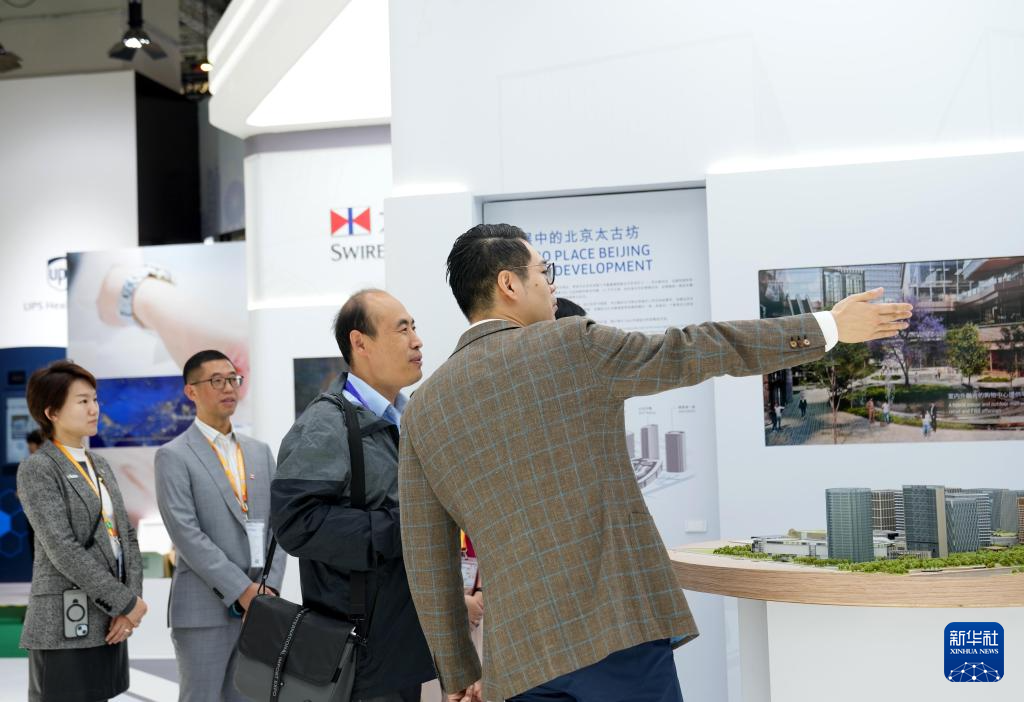 11月9日,工作人员在第七届进博会太古展台向观众介绍业务。太古今年首次参展进博会。