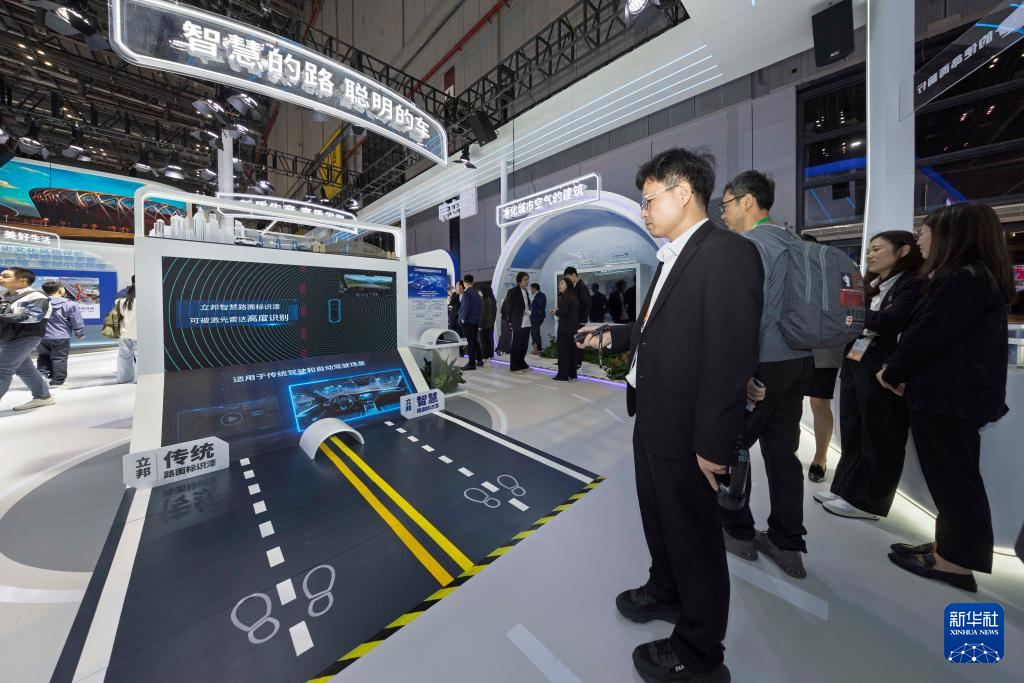 这是11月9日在第七届进博会立邦展台拍摄的“智慧路面标识漆”演示效果。立邦今年首次参展进博会。