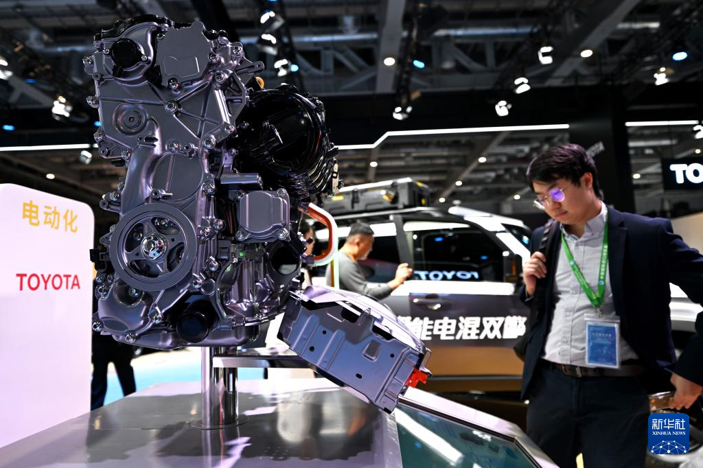 11月8日,观众在第七届进博会丰田展台了解智能电混双擎技术。丰田是进博会七届“全勤生”。