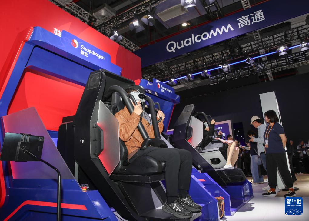 11月9日,观众在第七届进博会高通展台体验搭载高通骁龙芯片的智能设备。高通是进博会七届“全勤生”。
