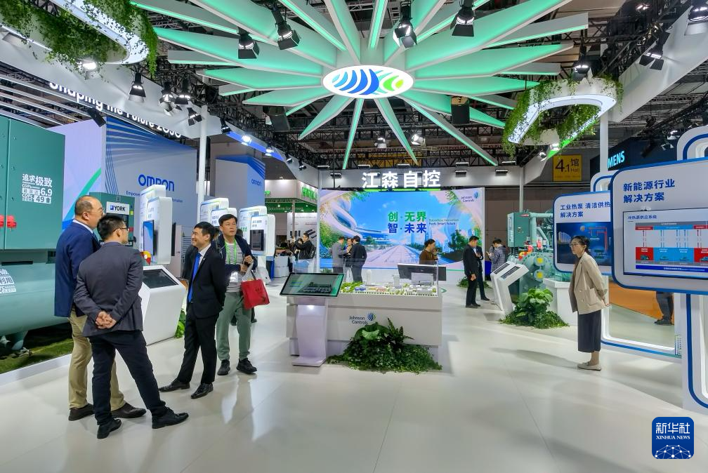 这是11月8日在第七届进博会上拍摄的江森自控展台。江森自控是进博会七届“全勤生”。