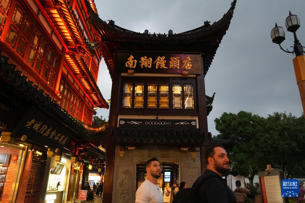 11月4日,游客从上海豫园九曲桥边的南翔馒头店前经过。