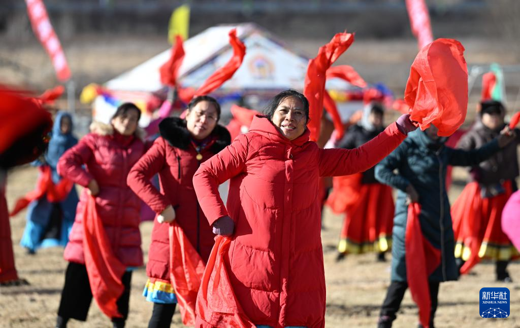 11月10日,人们在冰雪那达慕上表演安代舞。