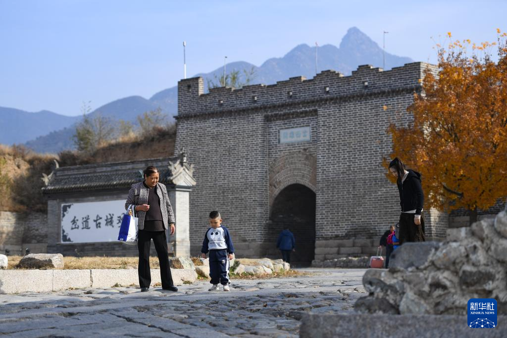 人们走在北京市延庆区八达岭镇的岔道古城(11月1日摄)。