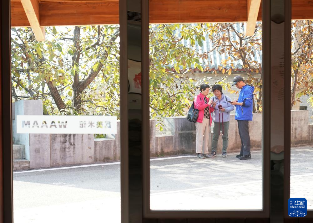 游客在北京市延庆区八达岭镇石峡村参观(11月7日摄)。