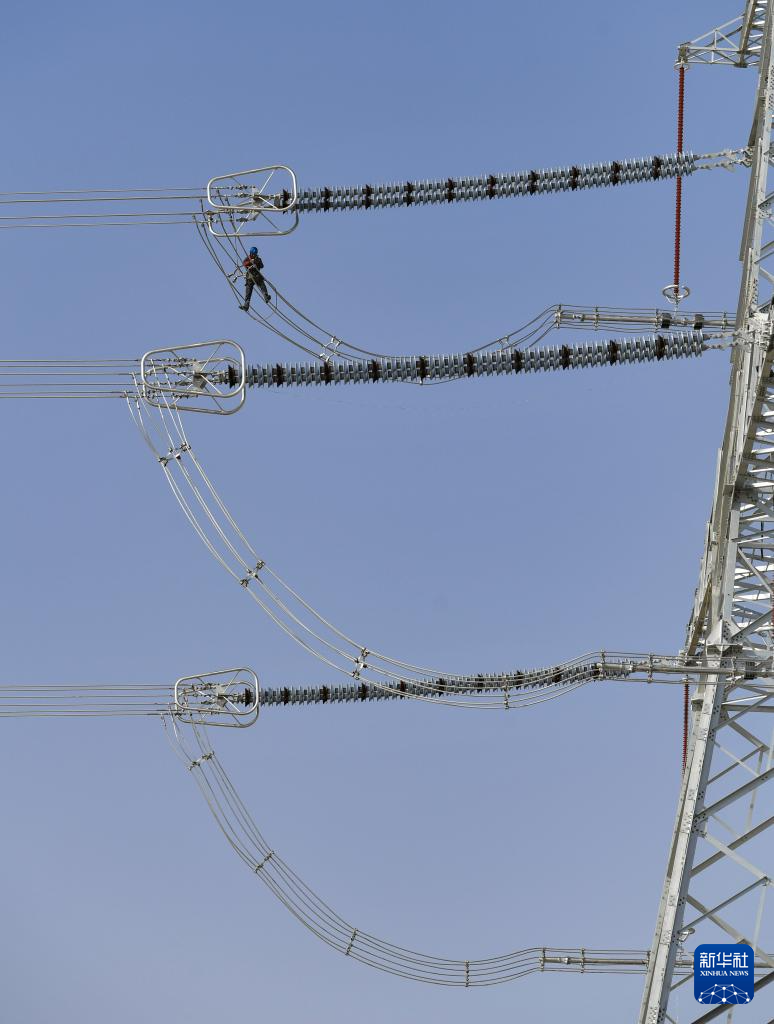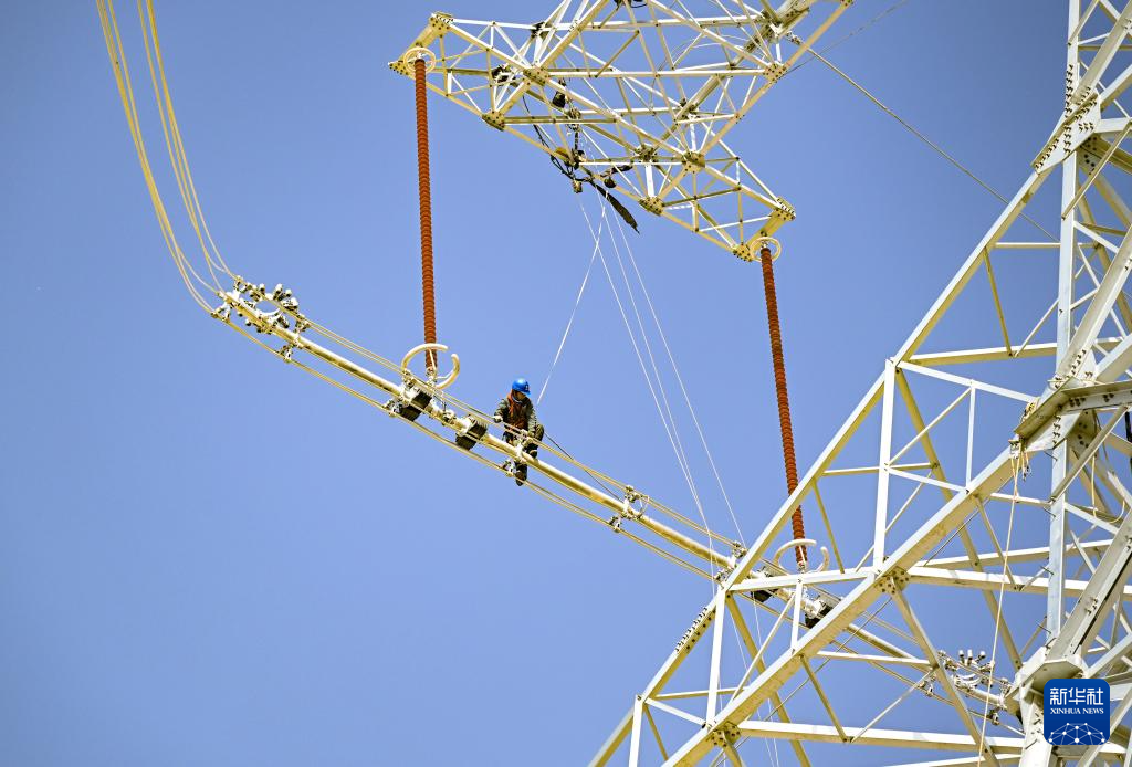 750千伏和田—民丰—且末—若羌输变电工程是新疆环塔里木盆地750千伏输变电工程中的最后一段。眼下,电力工人奋战在工程一线,有序进行地面和高空作业。据国家电网新疆电力有限公司介绍,截至目前,工程施工总进度已过半。
