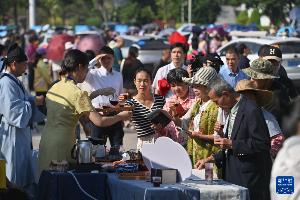 11月12日,在梧州苍海公园,游客和市民在品尝六堡茶。