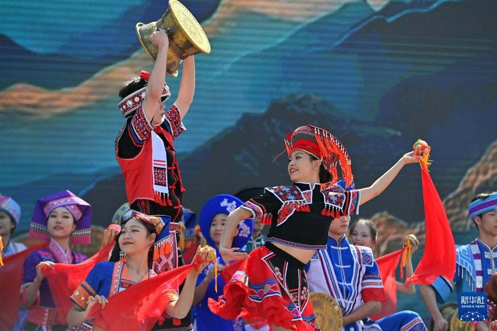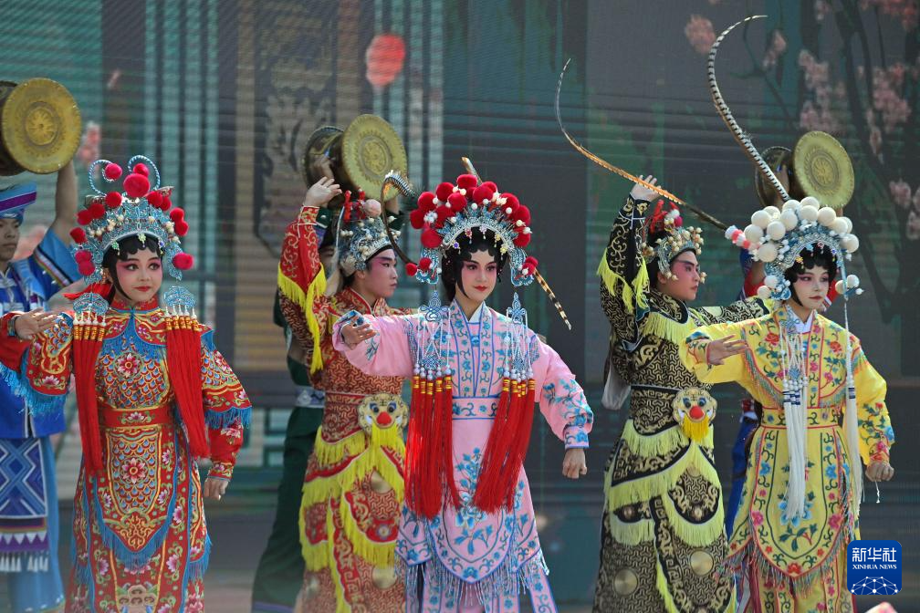 11月12日,在梧州市政广场,演员在表演民族歌舞。