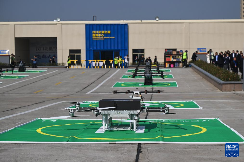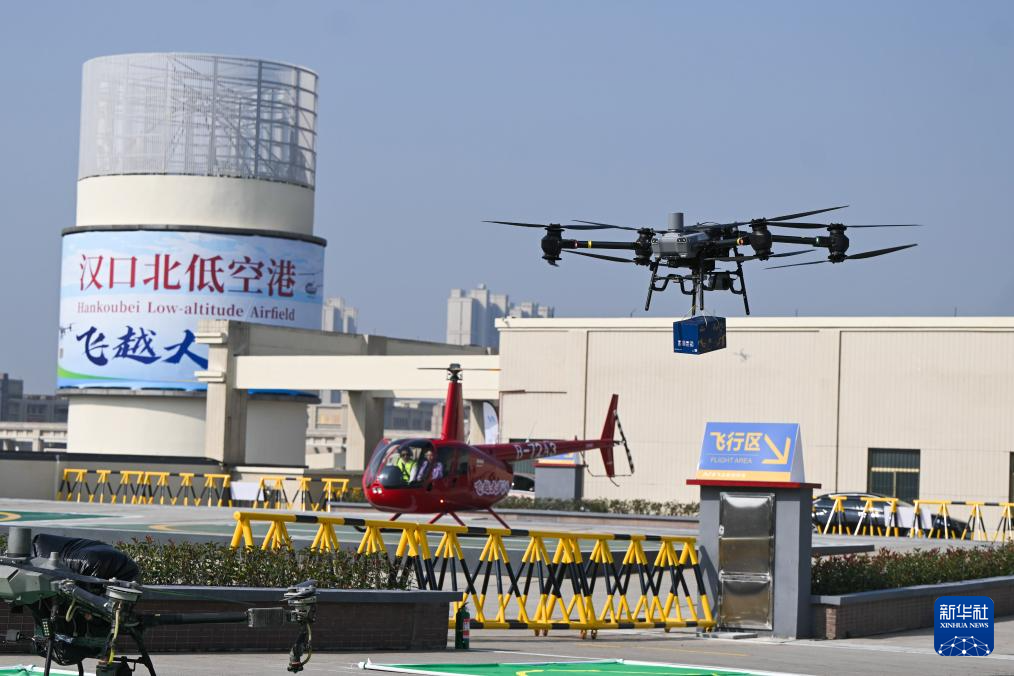 当日,在武汉市汉口北国际贸易城汉口北低空港内,多架装配快递盒的无人机腾跃而起,将海鲜、花卉、服饰等商品送往不同目的地。自此,全国批发市场首个低空物流基地启动常态化运营。