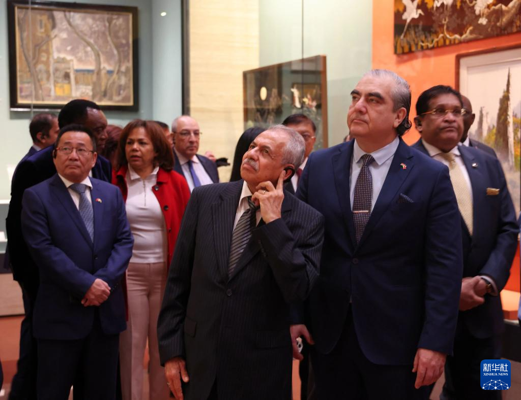 11月11日,驻华使节在参观“友好往来 命运与共——党和国家领导人外交活动礼品展”。