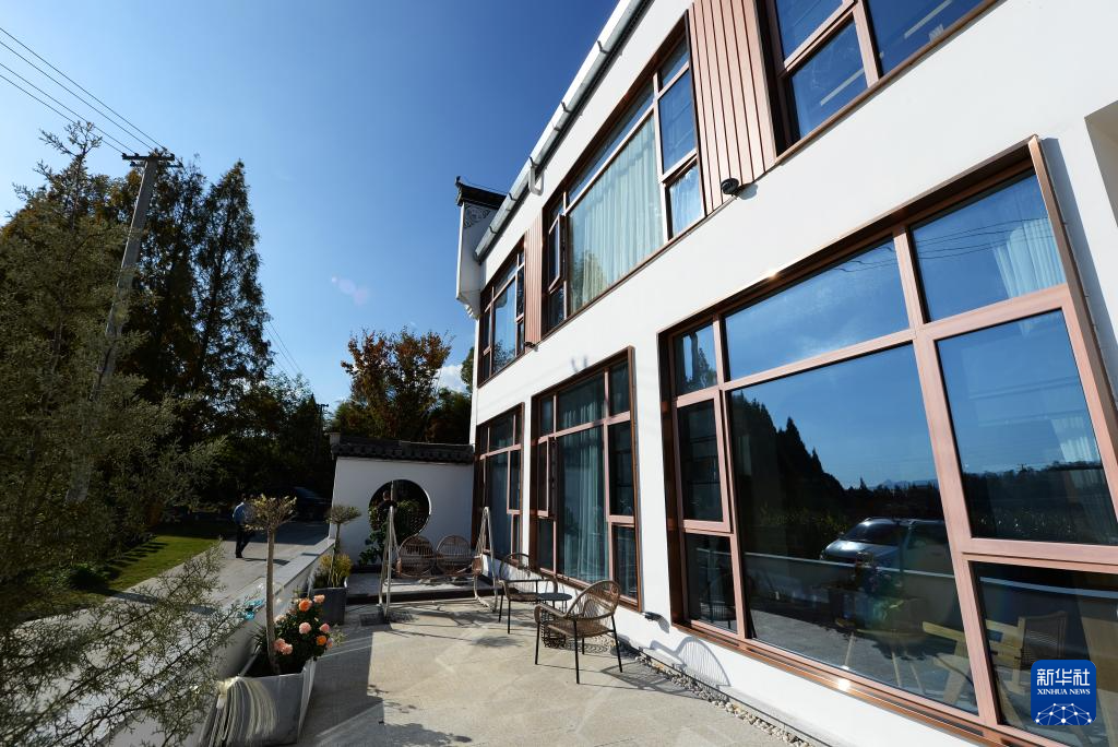 11月11日,一位女士在安徽省黄山市黟县一处乡村特色民宿休憩。