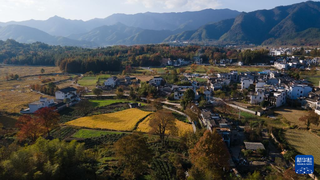 这是11月11日拍摄的安徽省黄山市黟县塔川村风景(无人机照片)。