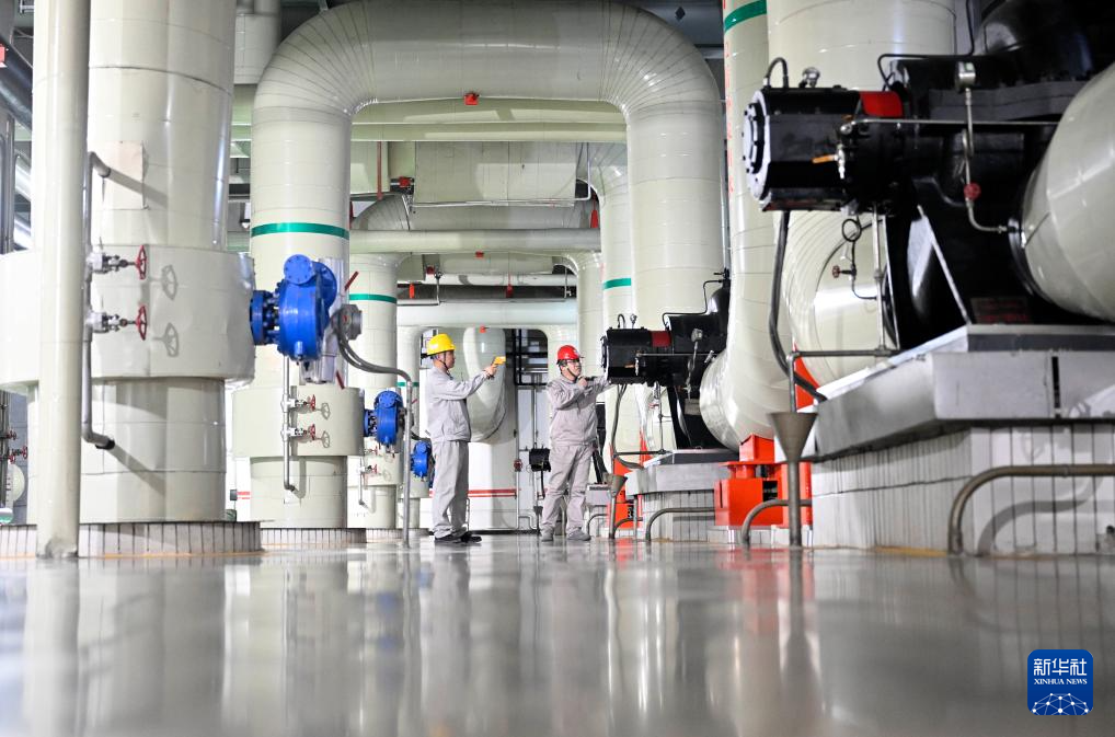 11月12日,国家能源集团宁夏灵武电厂工作人员在供暖设备机房对设备进行巡查。