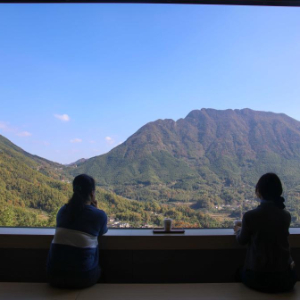 11月12日,游客在泾县汀溪乡皖南川藏线上的乡村咖啡店“空空里”品咖啡赏美景。