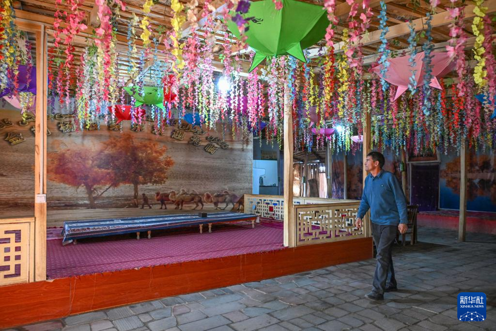 在新疆于田县达里雅布依新村,亚森江·买提肉孜在自己开办的农家乐内(2024年11月7日摄)。