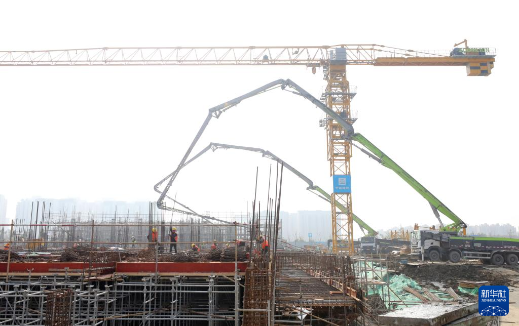 这是复旦大学附属中山医院青浦新城院区一期工程混凝土浇筑施工现场(11月13日摄)。