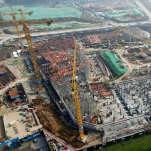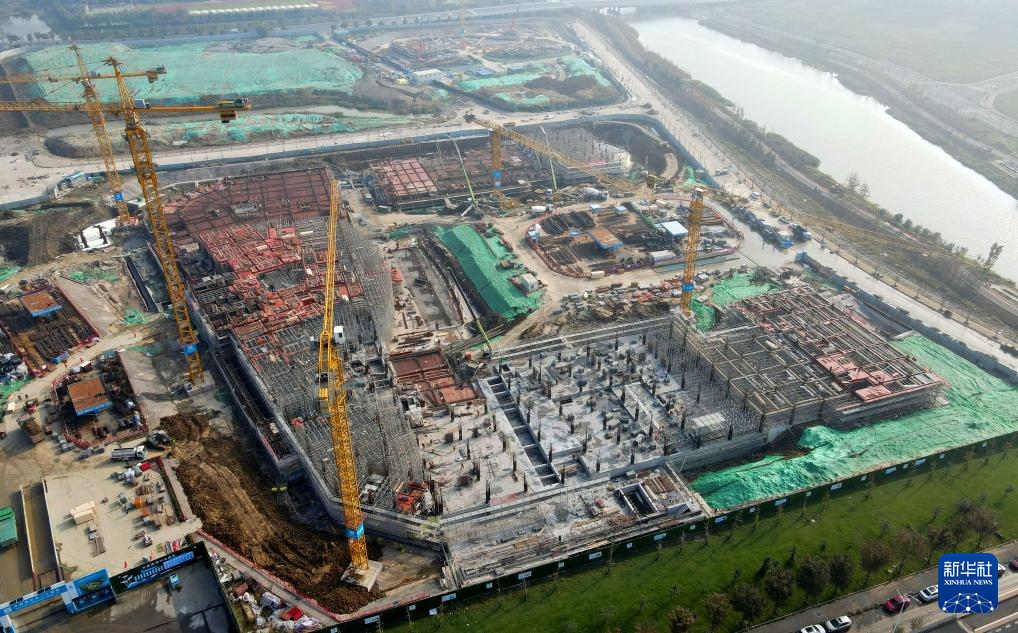 空中俯瞰复旦大学附属中山医院青浦新城院区一期工程建设项目施工现场(11月13日摄,无人机照片)。