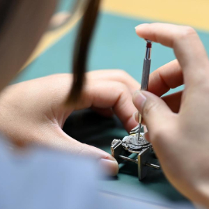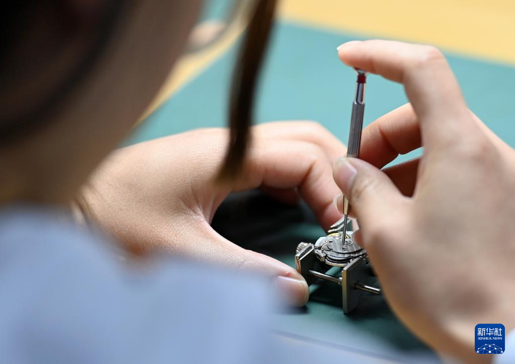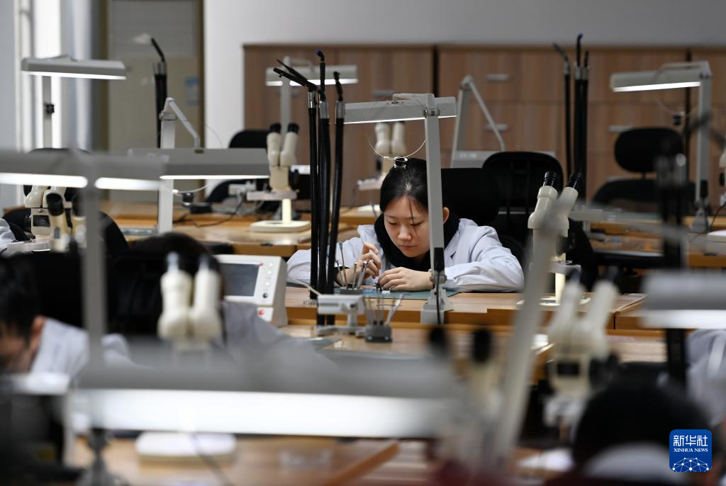 11月12日,天津现代职业技术学院学生在钟表与精密制造产教融合实践中心内调试手表机芯。