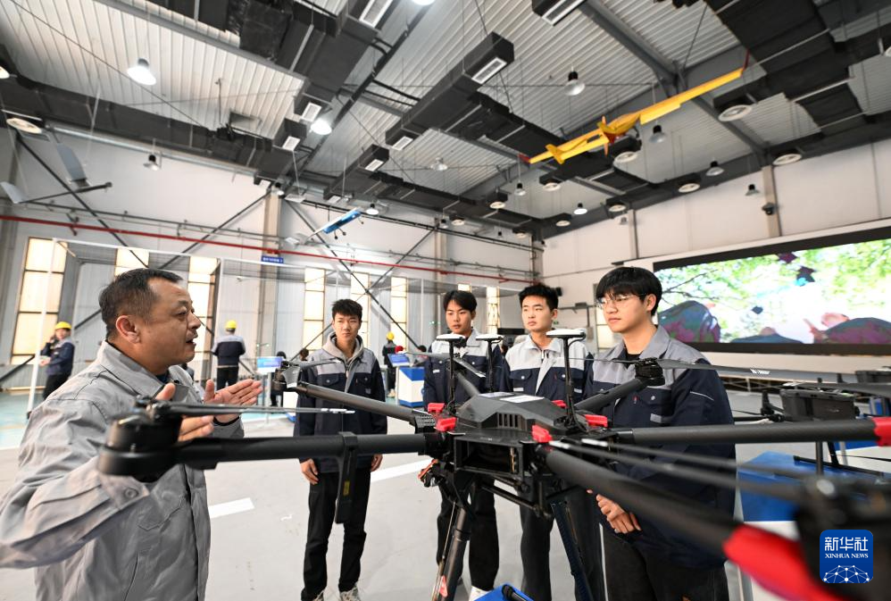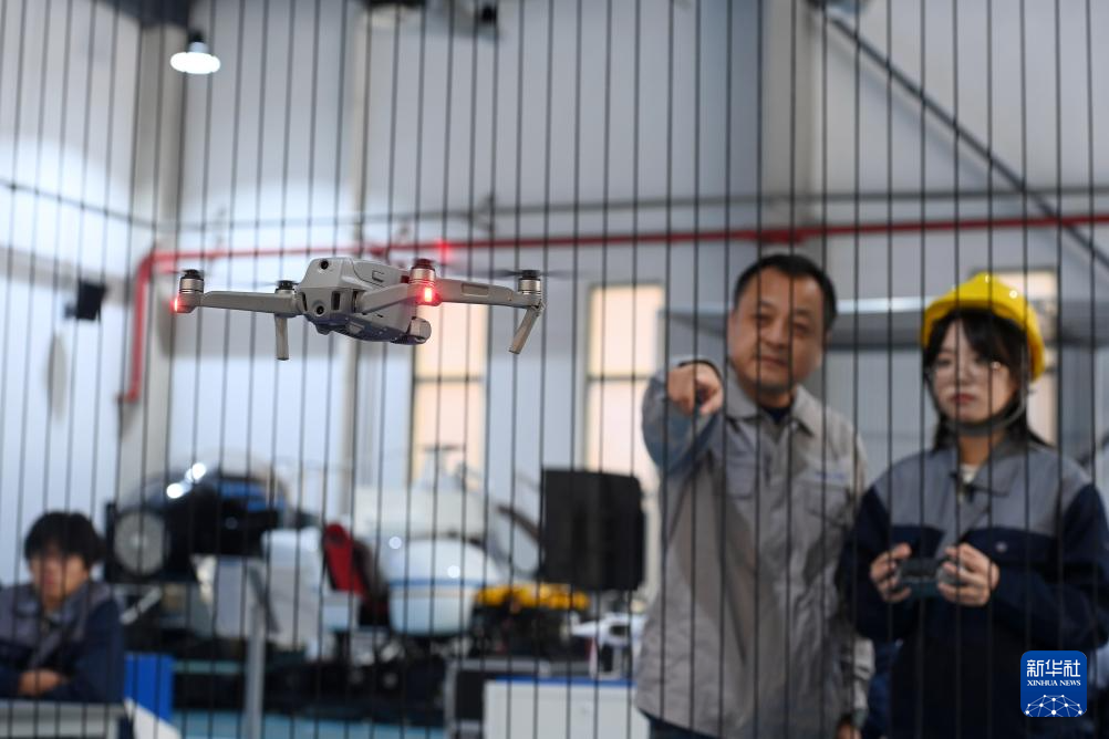 11月12日,天津现代职业技术学院老师在无人机产教融合实践中心指导学生。