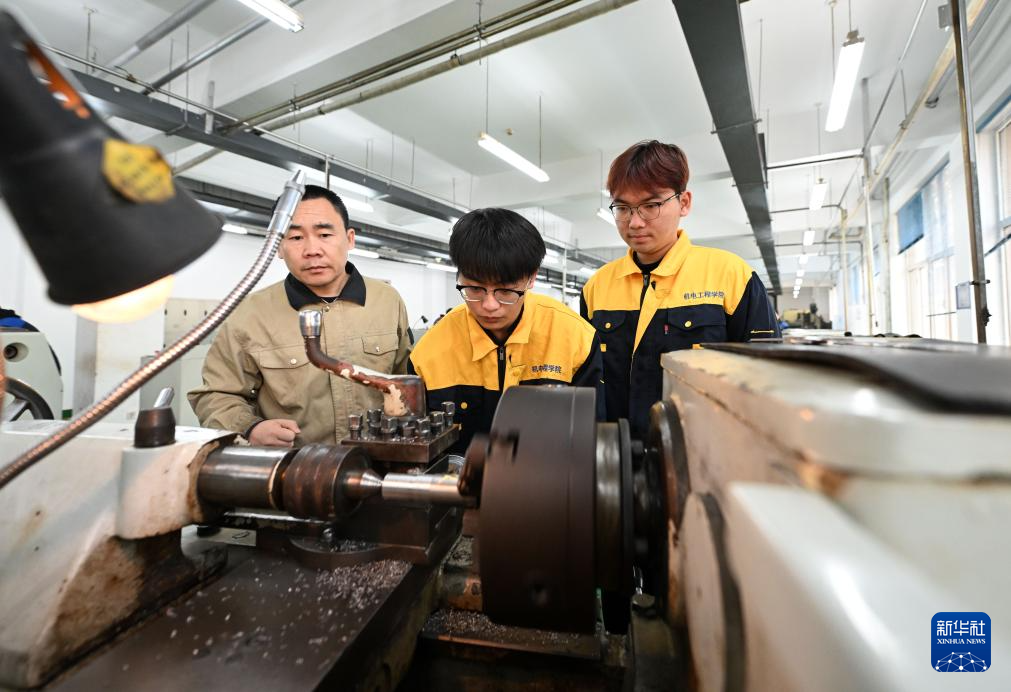 11月12日,天津现代职业技术学院老师在钟表与精密制造产教融合实践中心指导学生。
