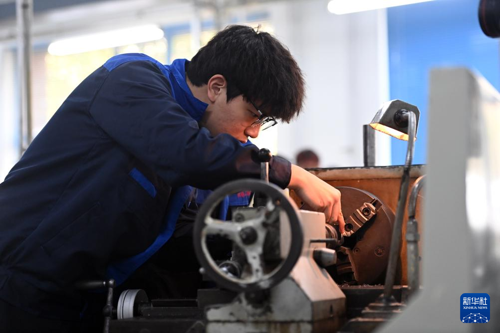 11月12日,天津现代职业技术学院学生在钟表与精密制造产教融合实践中心操作设备。