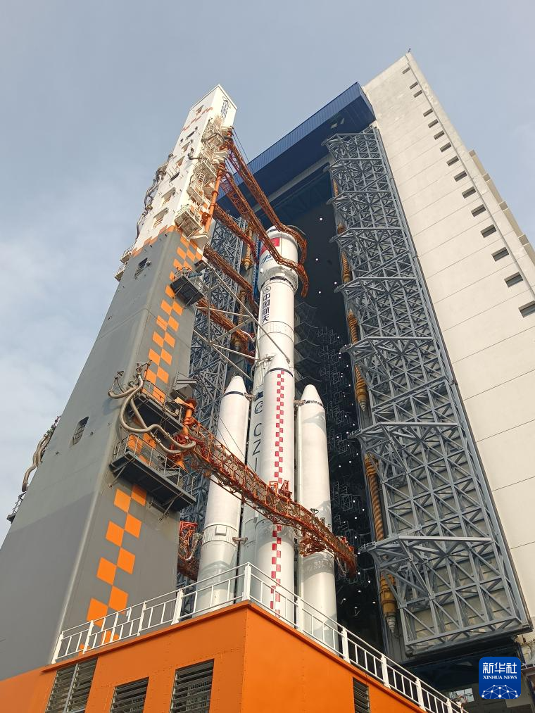 11月13日,天舟八号货运飞船与长征七号遥九运载火箭组合体垂直转运中。