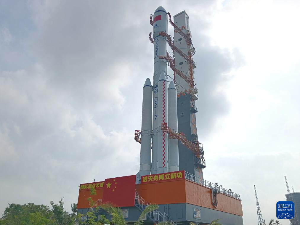 11月13日,天舟八号货运飞船与长征七号遥九运载火箭组合体垂直转运至发射区。