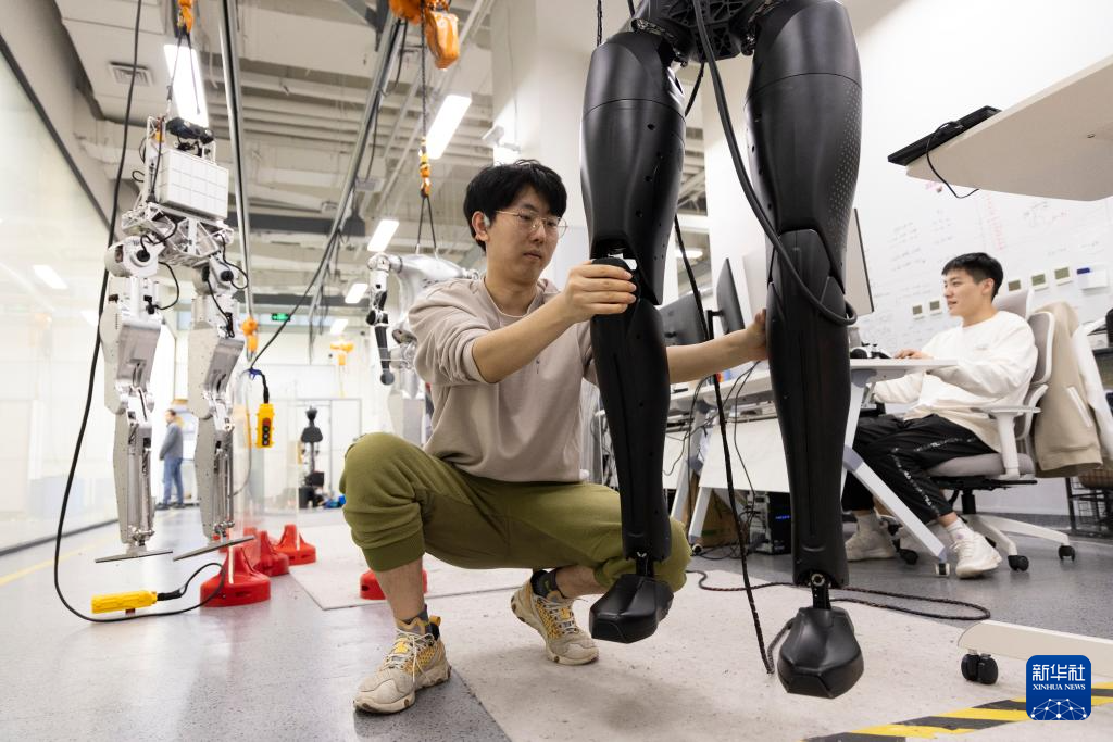 11月12日,科研人员在位于北京的实验室调试人形机器人“CASBOT 01”。