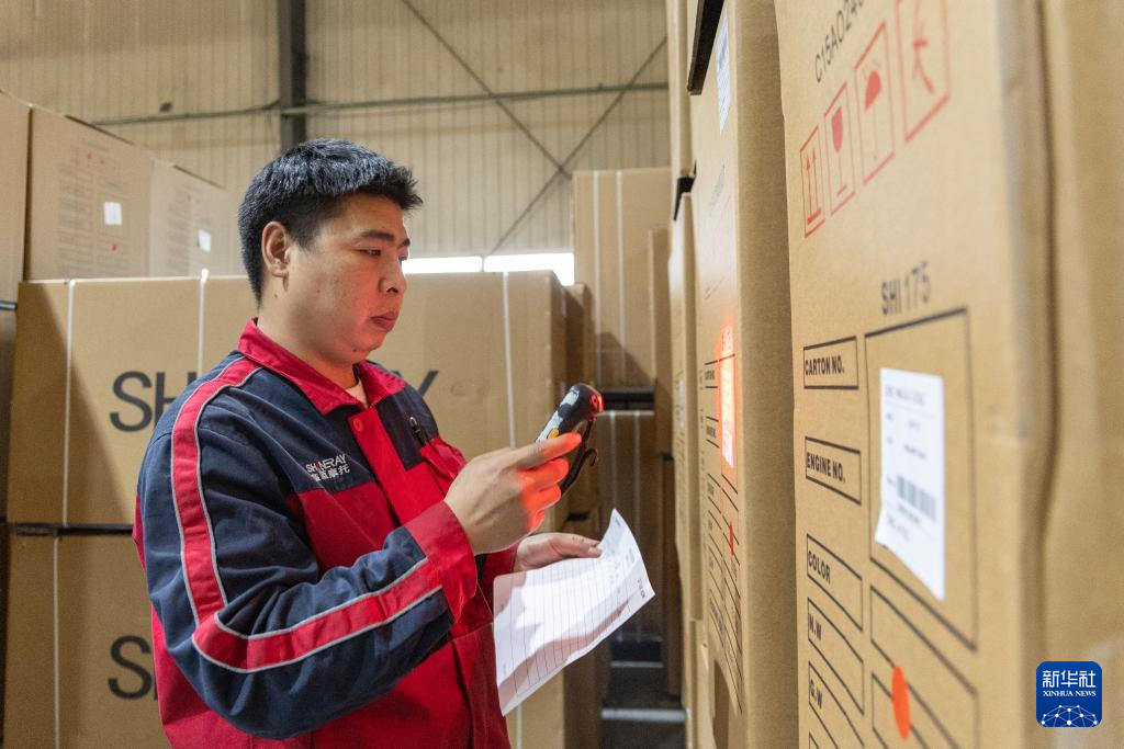 11月13日,在位于重庆高新区的重庆鑫源摩托车股份有限公司工厂内,工作人员在核对出口至拉美国家的摩托车信息。