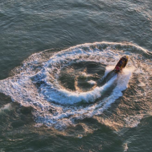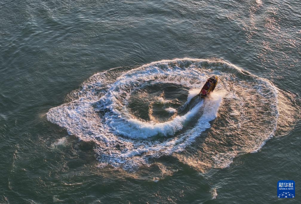 11月13日,在梧州市长洲区长洲镇泗洲村,游客在西江上体验摩托艇运动(无人机照片)。