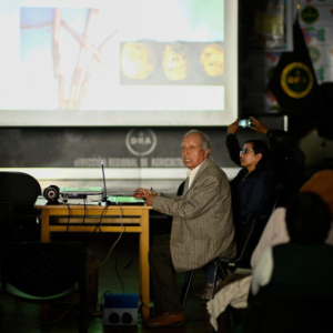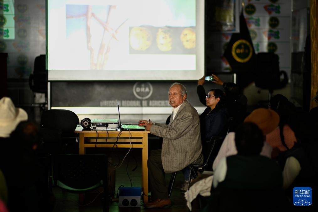 10月10日,在秘鲁万卡约市,当地农户聆听秘鲁马铃薯专家维克多·奥塔苏的马铃薯种植技术讲座。