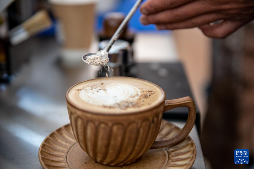 10月28日,在四川省甘孜藏族自治州康定市的八郎生都村,达科在“云海咖啡屋”制作咖啡。