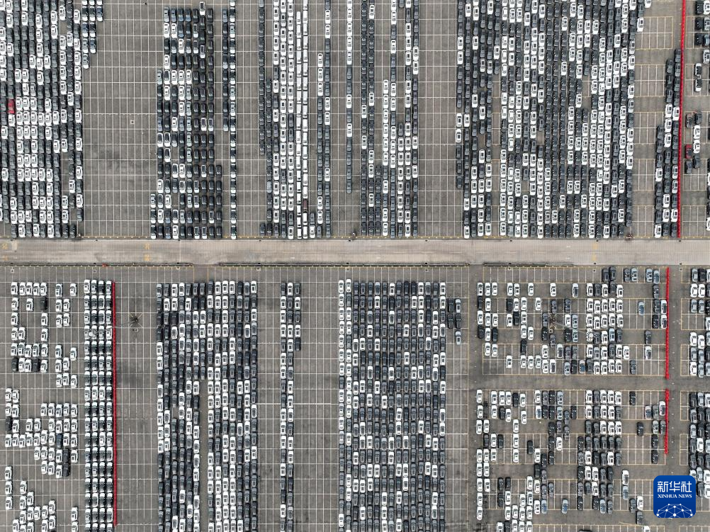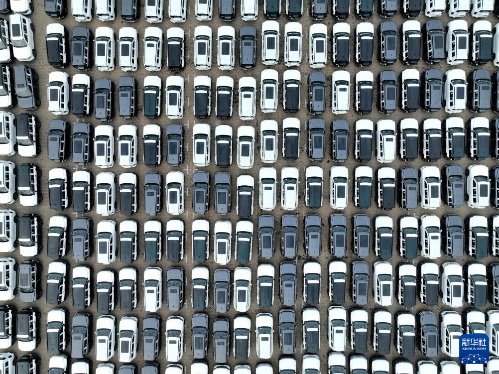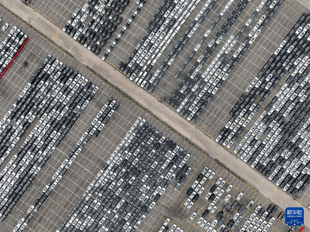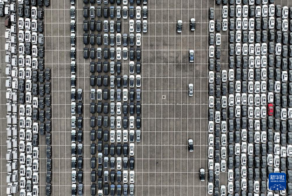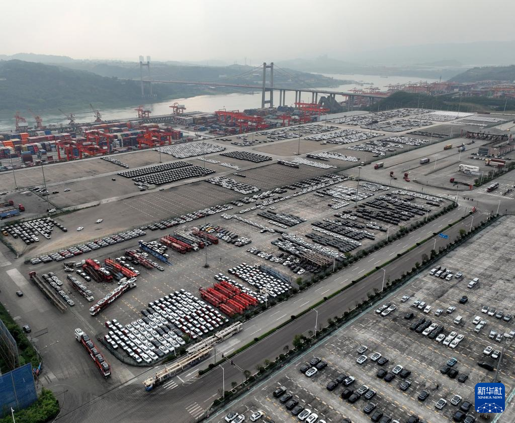 11月15日在重庆果园港拍摄的准备装运的汽车(无人机照片)。