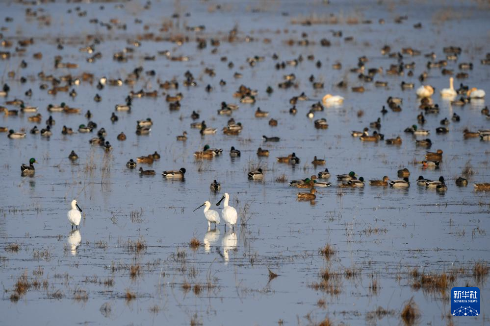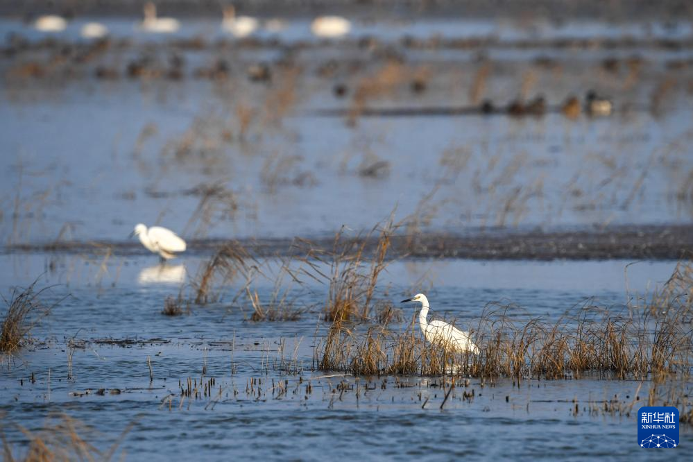 11月12日,候鸟在上海崇明东滩鸟类国家级自然保护区栖息。
