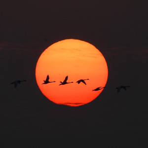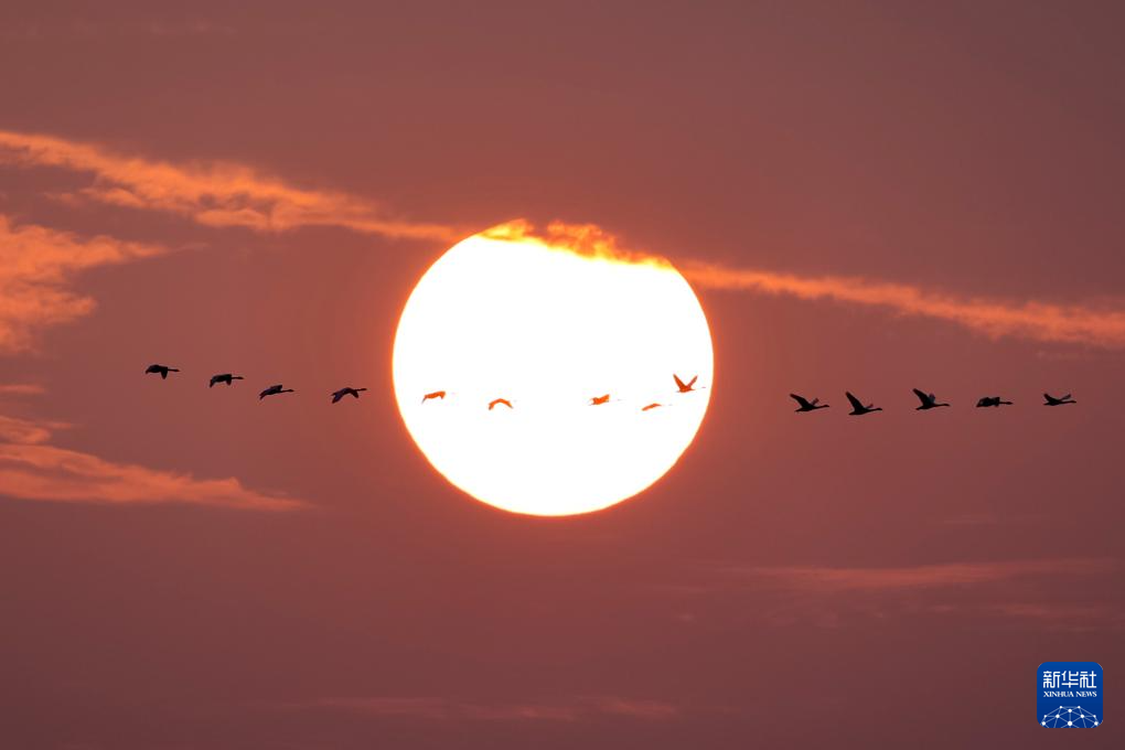 11月12日,候鸟在上海崇明东滩鸟类国家级自然保护区飞翔。