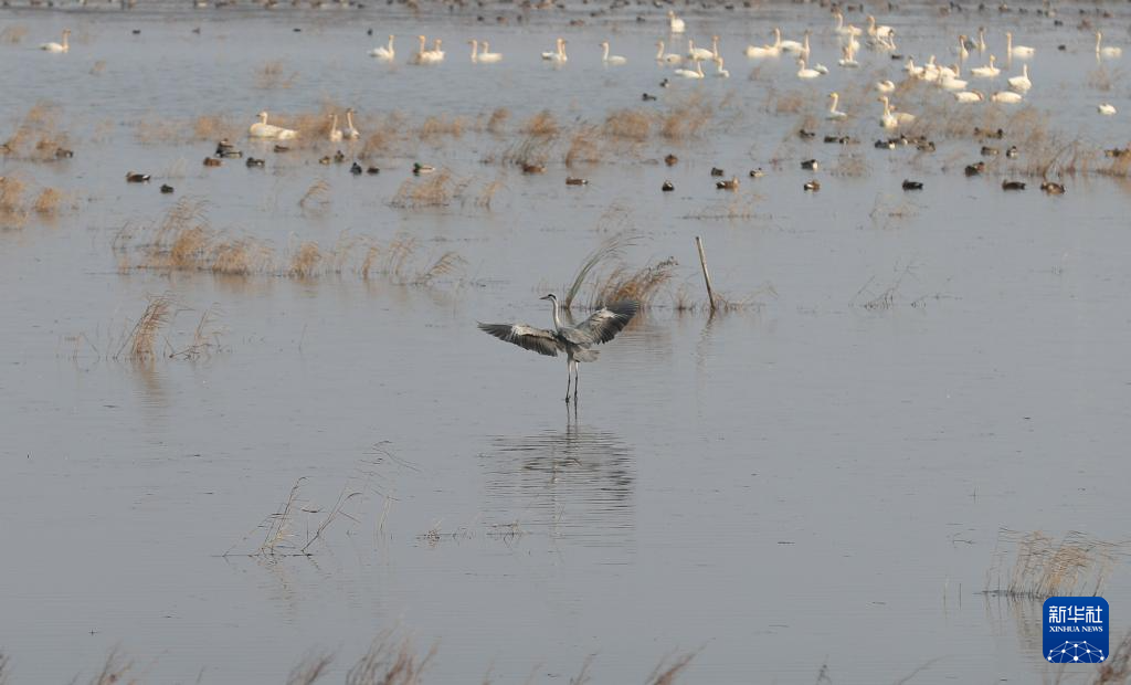 11月12日,苍鹭在上海崇明东滩鸟类国家级自然保护区飞翔。