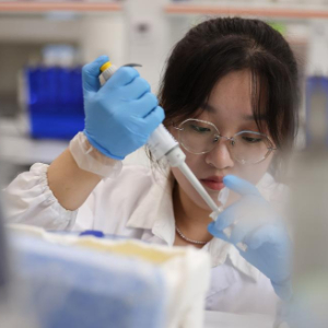 11月14日,在上海海洋大学的实验室内,王贺在做实验。